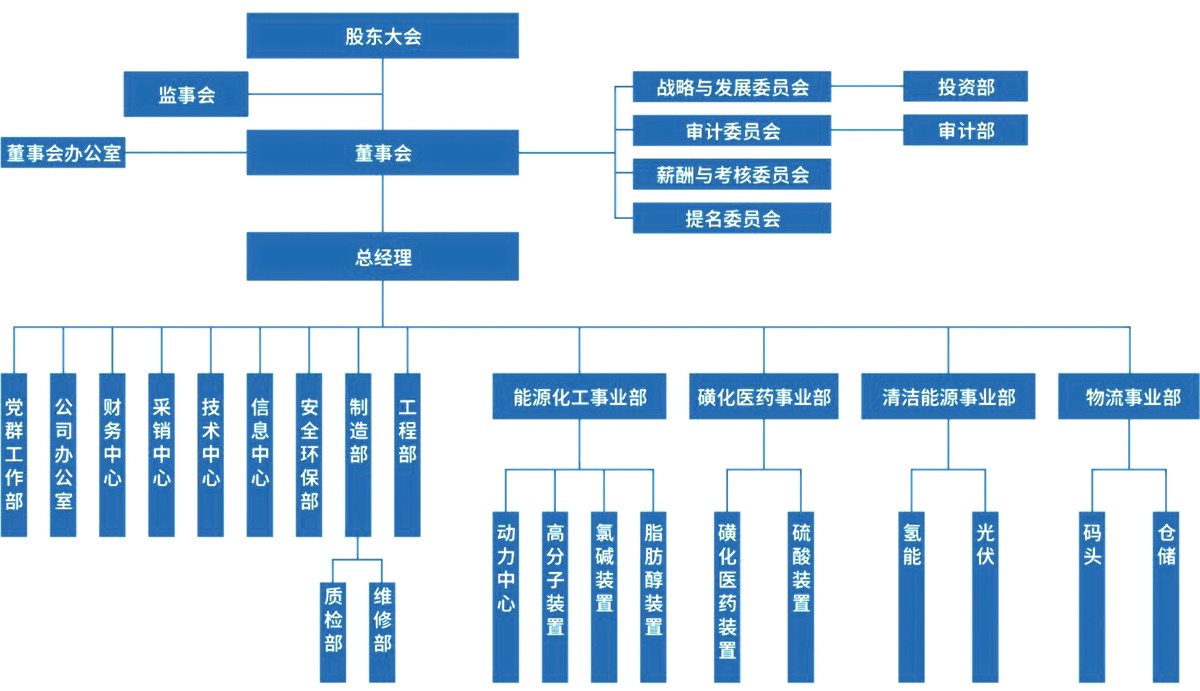 公司以熱電聯(lián)產(chǎn)為源頭,構建起包括基礎化工、特色新材料、氫能源利用等在內的能源和化工循環(huán)型產(chǎn)業(yè)體系,公司主要制造和銷(xiāo)售脂肪醇(酸)、聚氯乙烯(氯乙烯)、蒸汽、氯堿、磺化醫藥以及硫酸(精制硫酸)等系列產(chǎn)品,子公司經(jīng)營(yíng)新能源發(fā)電業(yè)務(wù)及氫能應用相關(guān)裝備的研發(fā)、系統集成開(kāi)發(fā)等、港口碼頭裝卸、倉儲等業(yè)務(wù)。公司擁有30萬(wàn)噸/年乙烯法聚氯乙烯(含氯乙烯)項目,同時(shí)擁有20萬(wàn)噸/年脂肪醇(酸)裝置,并且為浙北地區(嘉興、湖州)唯一氯堿生產(chǎn)商。公司通過(guò)熱電聯(lián)產(chǎn)機組產(chǎn)生蒸汽供熱,蒸汽主要用于公司各化工裝置及向化工新材料園區企業(yè)供熱。同時(shí)公司還是國內外磺化醫藥系列產(chǎn)品的主要供應商;公司利用工業(yè)副產(chǎn)氫,在氫能源領(lǐng)域進(jìn)行氫能一體化布局,結合公司已布局的光伏發(fā)電項目,優(yōu)化低碳、循環(huán)發(fā)展生態(tài),實(shí)現企業(yè)的綠色可持續發(fā)展。